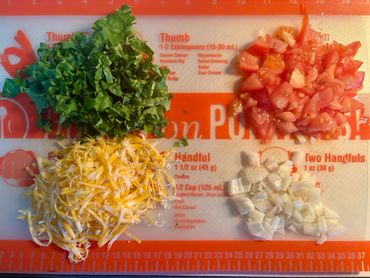 Smashed pinto beans with chili pepper, onion and garlic topped with cheese. 4oz, half cup.